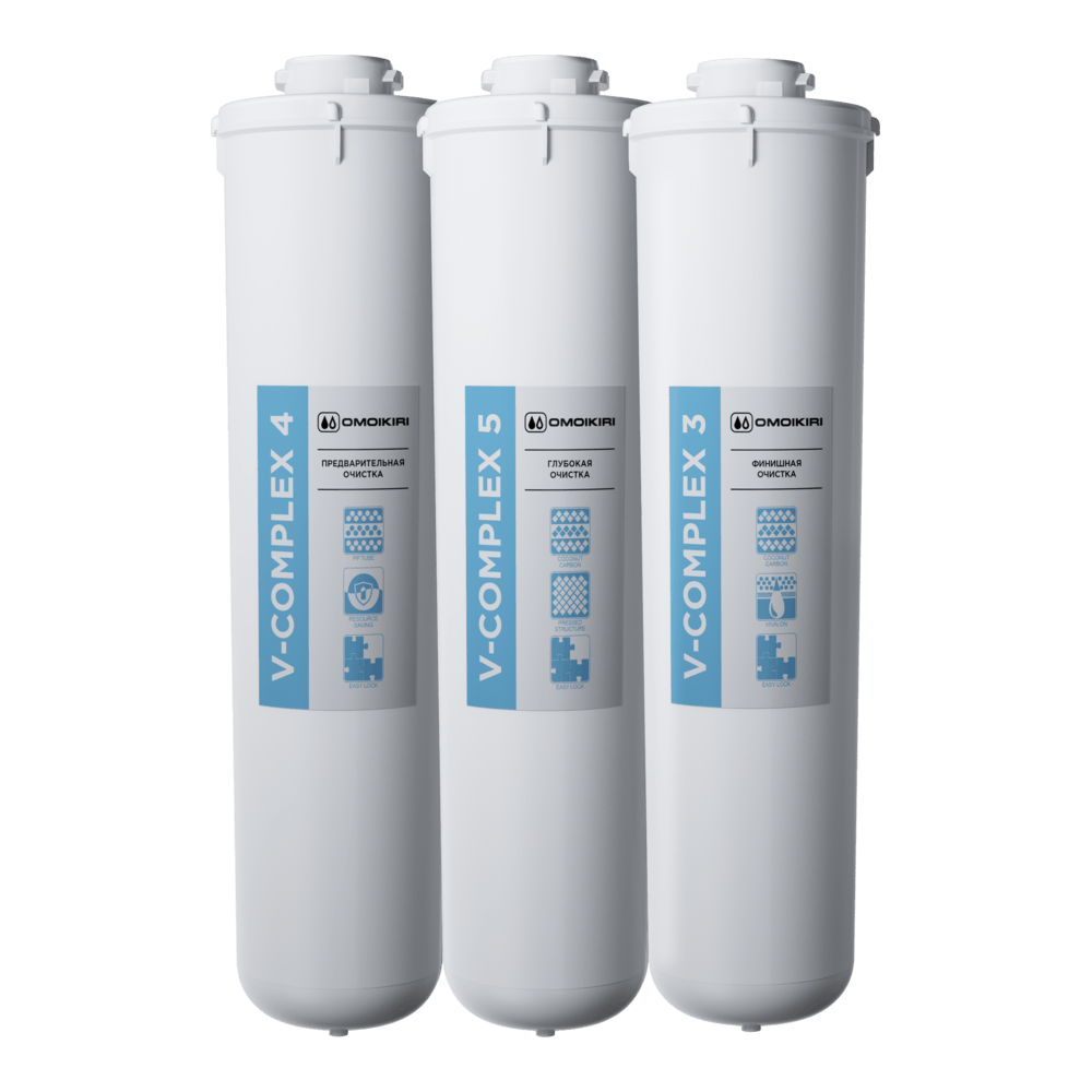 Комплект сменных модулей MOD 2.0 (V-Complex 3, V-Complex 4, V-Complex 5) предназначен предназначен для Pure Drop LiteV-Complex 4. Предварительная очистка. Неразборный сменный модуль с полипропиленовым картриджем внутри. Эффективно используется для воды с высоким содержанием механический примесей, позволяет продлить жизнь основным сорбционным модулям.V-Complex 5. Глубокая очистка. Изготовлен по технологии карбонблок с волокном с использованием мелкодисперсного активированного кокосового угля. Благодаря плотной структуре эффективно удаляет из воды органические примеси и активный хлор. Отфильтровывает частицы размером до 3 микрон. Ионообменные нити Vivalon с модифицированными селективными хелатными группами глубоко и необратимо очищает воду от тяжёлых металлов. Содержит серебро в активной ионной форме.V-Complex 3. Окончательная очистка. Сверхплотный карбонблок с волокном, изготовленный из порошкообразного активированного кокосового угля. Удаляет остаточные концентрации органических примесей и тяжёлых металлов. Отфильтровывает частицы размером до 0,8 микрон. Модифицированные нити Vivalon распределяет потоки воды в сверхплотной фильтрующей среде для достижения наилучшей очистки. Содержит серебро в активной ионной форме.